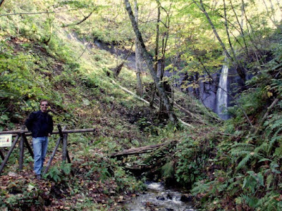 The waterfall is quite a distance off the road, in amongst a typically lush and vibrant Japanese forest. Yes - bear territory. Yet, who could think about such dangers when surrounded by such beauty as the light softly glowing through the leaves...